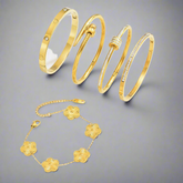 Ce bracelet trèfle doré est un accessoire mode intemporel, facile à porter au quotidien ou pour des événements. Sa symbolique de chance et son design raffiné en font également un cadeau idéal pour femme.